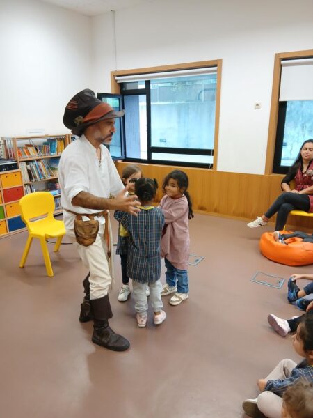 No âmbito das atividades que assinalam o Mês Internacional das Bibliotecas Escolares, foi no dia 21 de outubro que tivemos o prazer de ter connosco o contador de histórias Rui Ramos, para as turmas do 5º ano (na BE Gil Vicente) e todos os alunos da Escola Básica de Urgezes (do pré escolar até ao 4º ano). Foram 4 sessões muito divertidas, na quais as histórias foram as estrelas principais, assim como a mestria e excelente trabalho deste espetacular contador de histórias…Vale a pena celebrar assim as nossas bibliotecas!